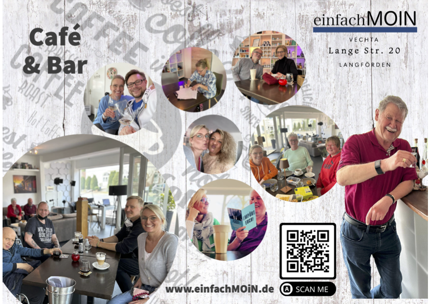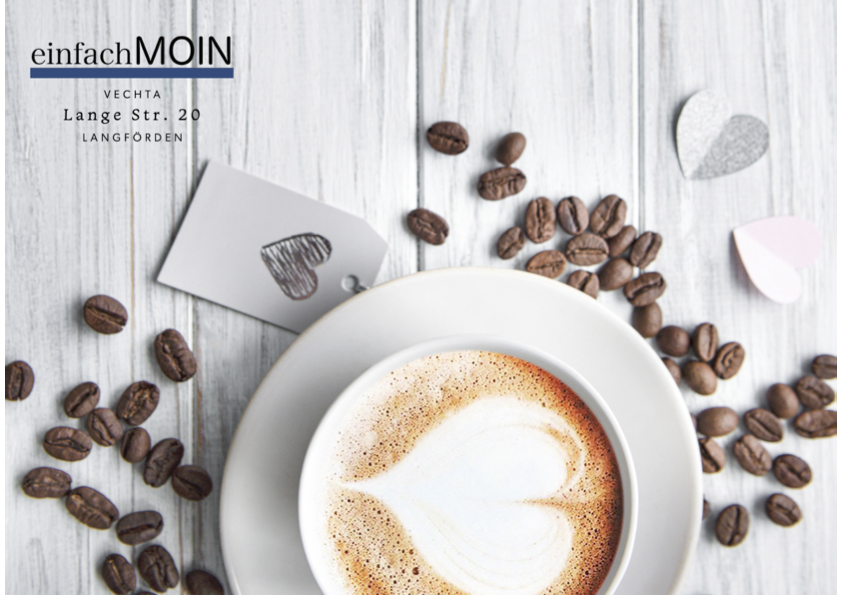Willkommen bei einfachMOiN! Wir sind ein gemütliches Café im Herzen von Vechta und bieten Ihnen eine entspannte Atmosphäre, um Ihre Pause vom Alltag zu genießen. Unser freundliches Team begrüßt Sie jeden Tag mit einem Lächeln und einem leckeren Kaffee.